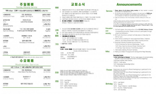 날짜: 2025.12.18 글쓴이 : 관리자 | 교회소식